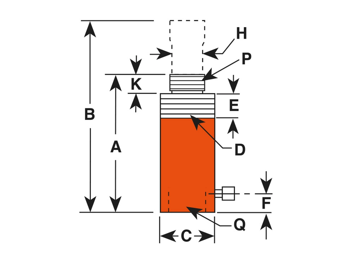 | Model | Kapasite | Strok | Etki Alanı | Yağ Hacmi | Kapalı Boy | Dış Çap | Rot Çapı | Kaplin Mesafesi | E | P | Q | Ağırlık |