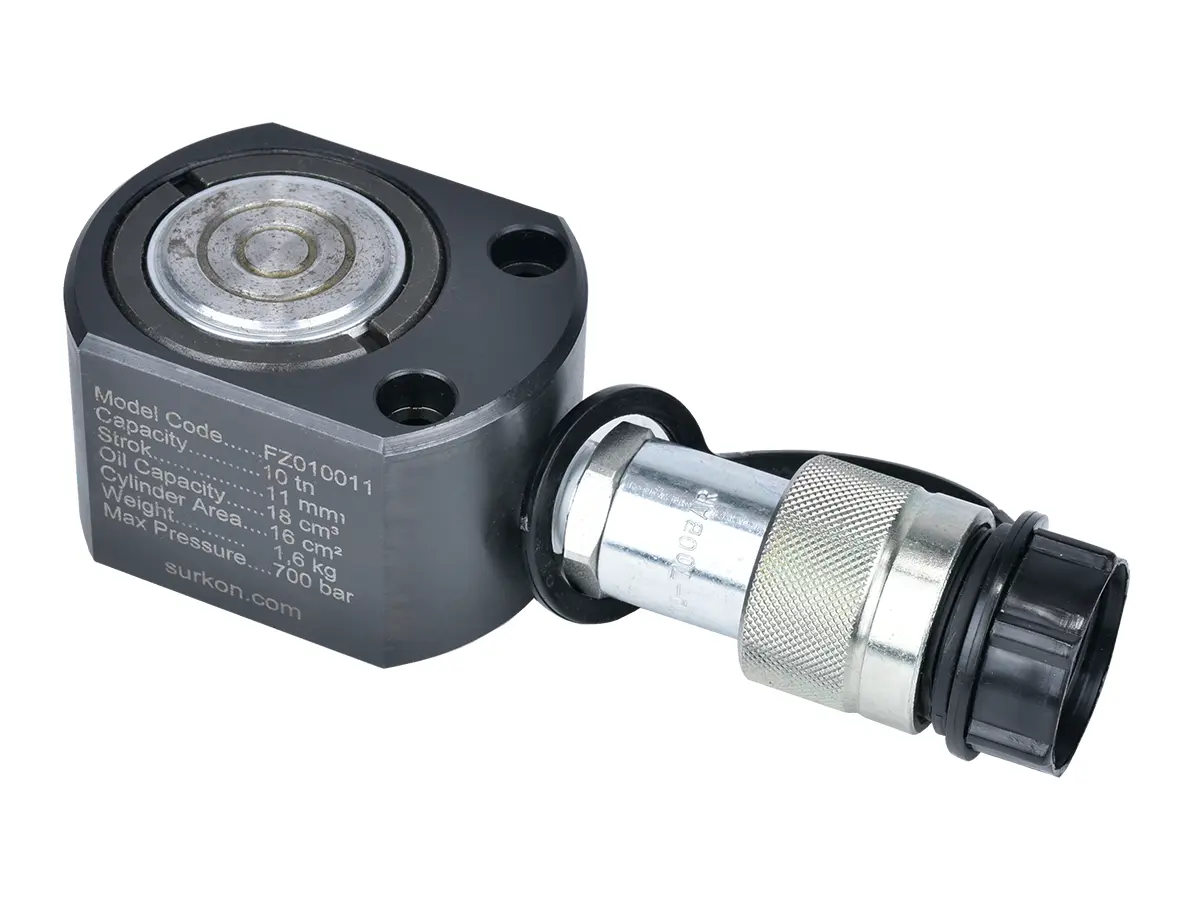 Surkon FZ serisi hidrolik krikolar, 5 ila 150 ton kapasite aralığı ile ağır iş koşullarında üstün performans gösterir. Ultra yassı ve hafif yaprak tasarımı sayesinde, dar ve zorlu çalışma alanlarında kullanım için idealdir. 11, 14, 16 ve 25 mm strok boyları seçenekleriyle çeşitli uygulamalara uyum sağlar.