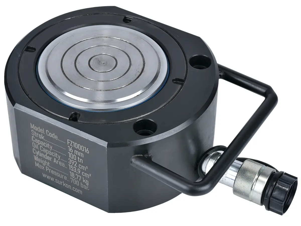 Surkon FZ serisi hidrolik krikolar, 5 ila 150 ton kapasite aralığı ile ağır iş koşullarında üstün performans gösterir. Ultra yassı ve hafif yaprak tasarımı sayesinde, dar ve zorlu çalışma alanlarında kullanım için idealdir. 11, 14, 16 ve 25 mm strok boyları seçenekleriyle çeşitli uygulamalara uyum sağlar.