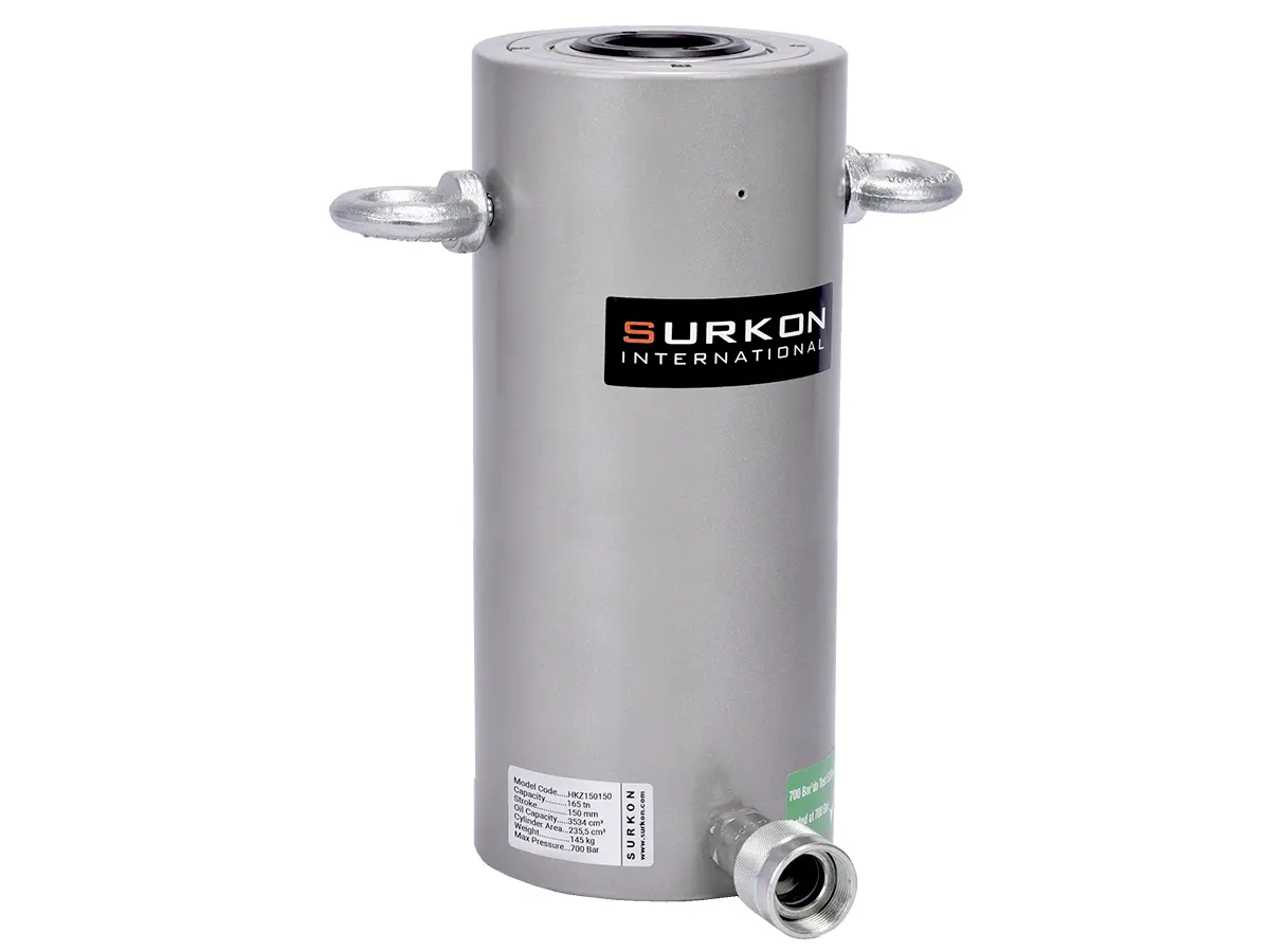 HKZ serisi delikli piston krikolar her türlü hidrolik çektirme, bulon ve halat gerdirme işlemleri için ideal çözümler sunar. Delik çapları, kapalı boy ve ağırlıklar müşteri ihtiyaçlarına göre tasarlanmıştır. Surkon delikli piston hidrolik krikolar konusunda uzun yılların deneyimi ile en uygun ölçüleri standart hale getirmiştir. Bu krikolar, iş makinesi tamir servisleri, saplama gerdirme veya çekme işlemi yapan atölyeler ve bulon çekme test işlemi yapan işletmeler için vazgeçilmez bir ekipmandır.
