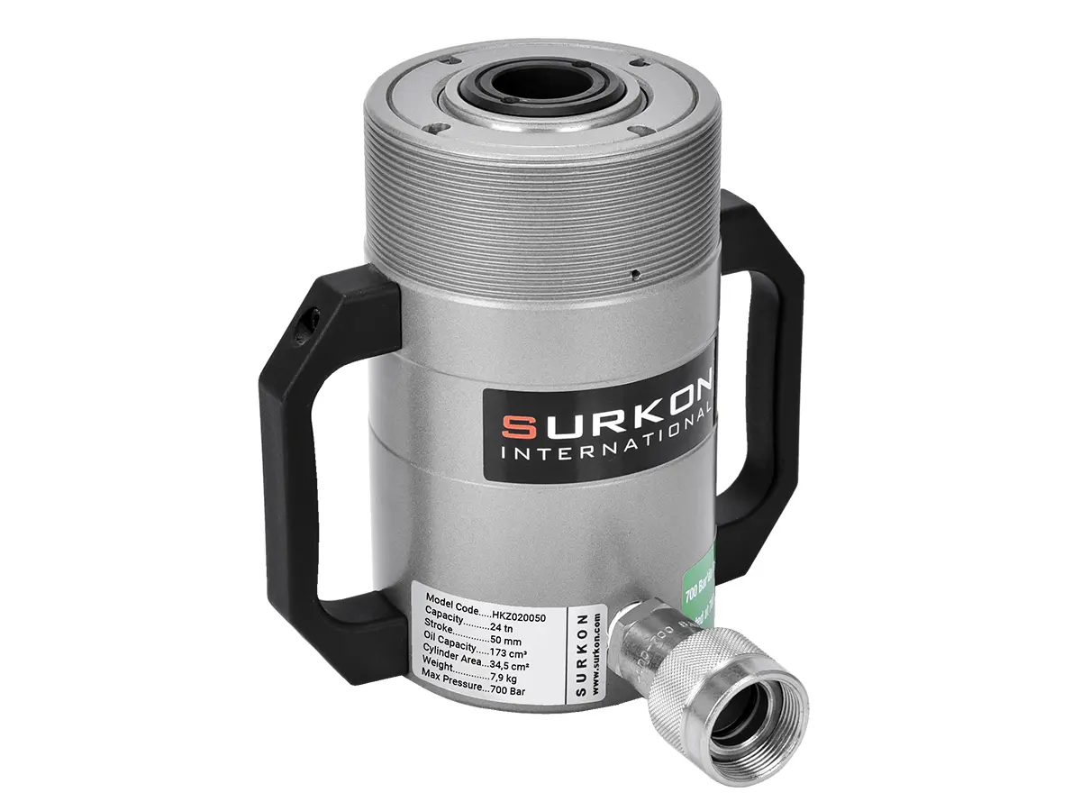 HKZ serisi delikli piston krikolar her türlü hidrolik çektirme, bulon ve halat gerdirme işlemleri için ideal çözümler sunar. Delik çapları, kapalı boy ve ağırlıklar müşteri ihtiyaçlarına göre tasarlanmıştır. Surkon delikli piston hidrolik krikolar konusunda uzun yılların deneyimi ile en uygun ölçüleri standart hale getirmiştir. Bu krikolar, iş makinesi tamir servisleri, saplama gerdirme veya çekme işlemi yapan atölyeler ve bulon çekme test işlemi yapan işletmeler için vazgeçilmez bir ekipmandır.