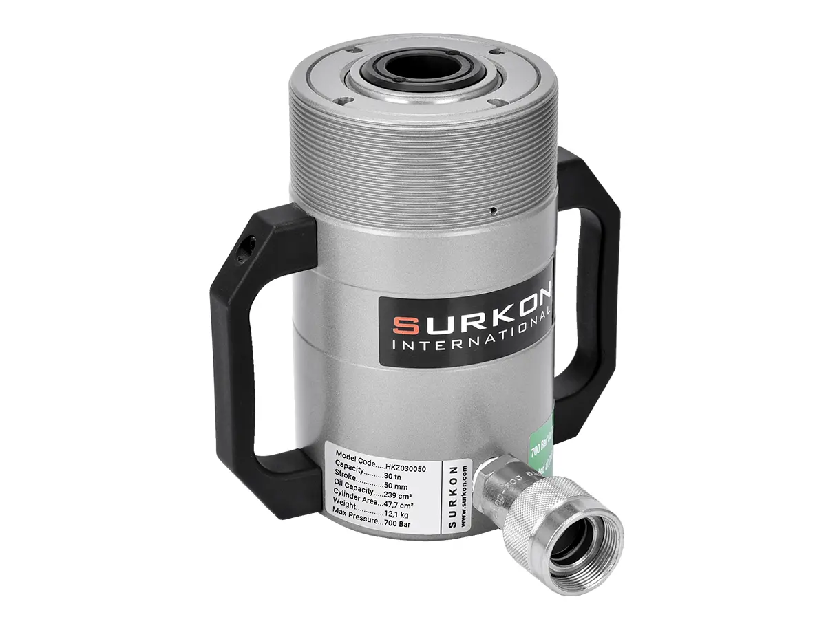 HKZ serisi delikli piston krikolar her türlü hidrolik çektirme, bulon ve halat gerdirme işlemleri için ideal çözümler sunar. Delik çapları, kapalı boy ve ağırlıklar müşteri ihtiyaçlarına göre tasarlanmıştır. Surkon delikli piston hidrolik krikolar konusunda uzun yılların deneyimi ile en uygun ölçüleri standart hale getirmiştir. Bu krikolar, iş makinesi tamir servisleri, saplama gerdirme veya çekme işlemi yapan atölyeler ve bulon çekme test işlemi yapan işletmeler için vazgeçilmez bir ekipmandır.