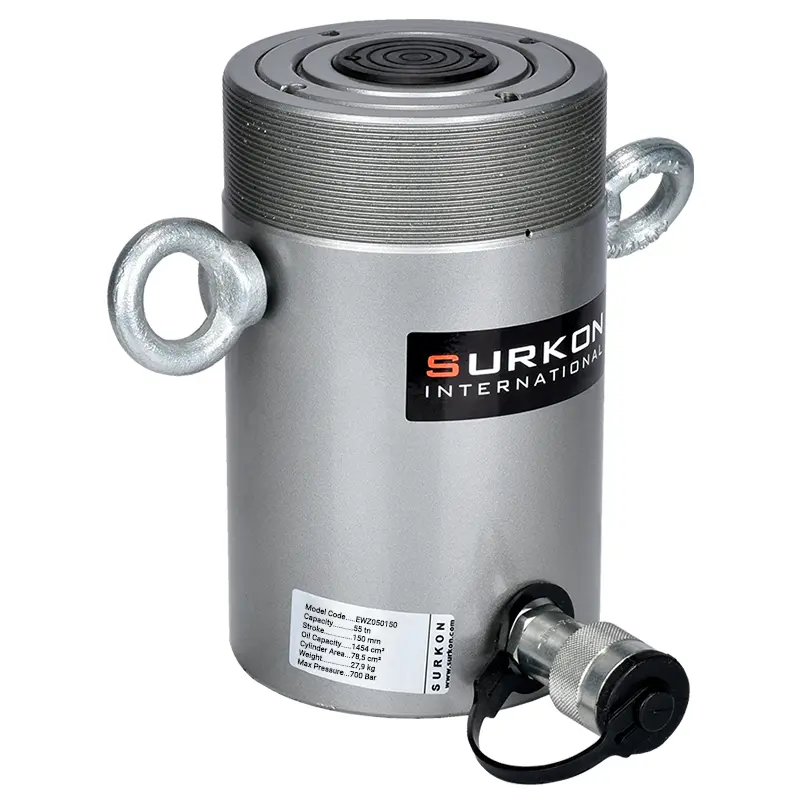 Surkon EWZ serisi hidrolik ekipmanlar, 700 barda çalışan, tek etkili yay dönüşlü krikolardır. Çok amaçlı kullanıma uygun hidrolik krikolar krikolar 5 ton ile 150 ton kapasite arasında çok sayıda modeli içerir. Her kapasitede 50mm, 100mm, 150mm ve 200mm strok boyları bulunur. Surkon krikoları Türkiye’de üretilir. Avrupa menşeyli olan tüm markalarla aynı kalite ve garanti şartlarını karşılar. 700 Bar tüm hidrolik el pompası, elektrikli ünite ve hidropnomatik ünitelerle yüzde yüz uyumludur. Teknik destek Türkiye’de Surkon tarafından sağlanır