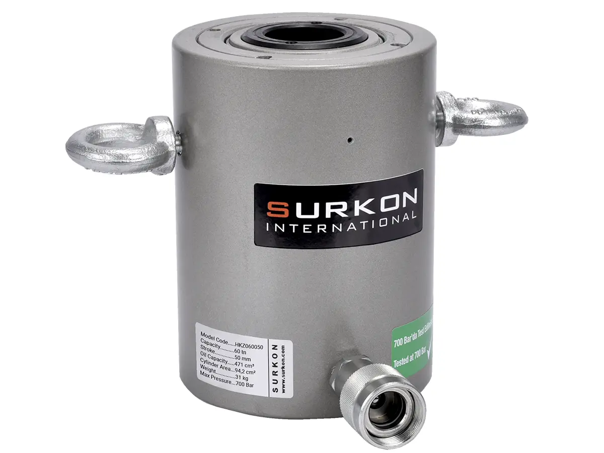 HKZ serisi delikli piston krikolar her türlü hidrolik çektirme, bulon ve halat gerdirme işlemleri için ideal çözümler sunar. Delik çapları, kapalı boy ve ağırlıklar müşteri ihtiyaçlarına göre tasarlanmıştır. Surkon delikli piston hidrolik krikolar konusunda uzun yılların deneyimi ile en uygun ölçüleri standart hale getirmiştir. Bu krikolar, iş makinesi tamir servisleri, saplama gerdirme veya çekme işlemi yapan atölyeler ve bulon çekme test işlemi yapan işletmeler için vazgeçilmez bir ekipmandır.