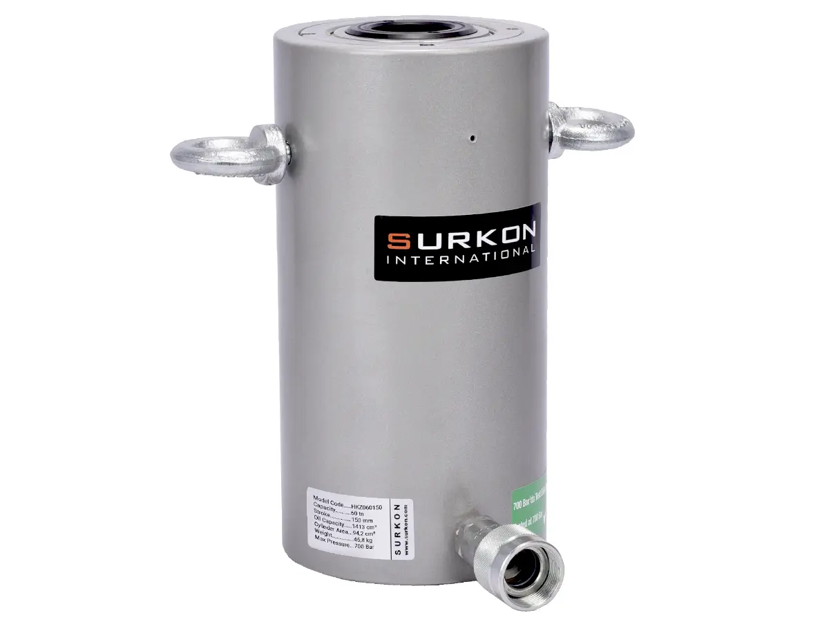 HKZ serisi delikli piston krikolar her türlü hidrolik çektirme, bulon ve halat gerdirme işlemleri için ideal çözümler sunar. Delik çapları, kapalı boy ve ağırlıklar müşteri ihtiyaçlarına göre tasarlanmıştır. Surkon delikli piston hidrolik krikolar konusunda uzun yılların deneyimi ile en uygun ölçüleri standart hale getirmiştir. Bu krikolar, iş makinesi tamir servisleri, saplama gerdirme veya çekme işlemi yapan atölyeler ve bulon çekme test işlemi yapan işletmeler için vazgeçilmez bir ekipmandır.