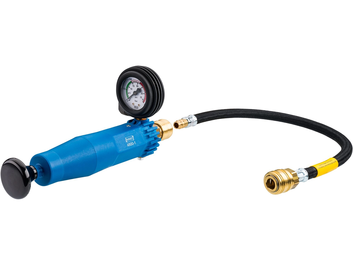 Hazet 4800-1 Radyatör Sızdırmazlık Vakum El Pompası, maksimum 2.5 bar hava basıncı ile araç soğutma sistemleri ve ısıtma devrelerinde kaçak kontrolü için kullanılır. Soğutma pompası özelliği, hızlı kaplin bağlantısı ve kendi kendini test etme fonksiyonu sayesinde güvenli ve pratik kullanım sağlar.