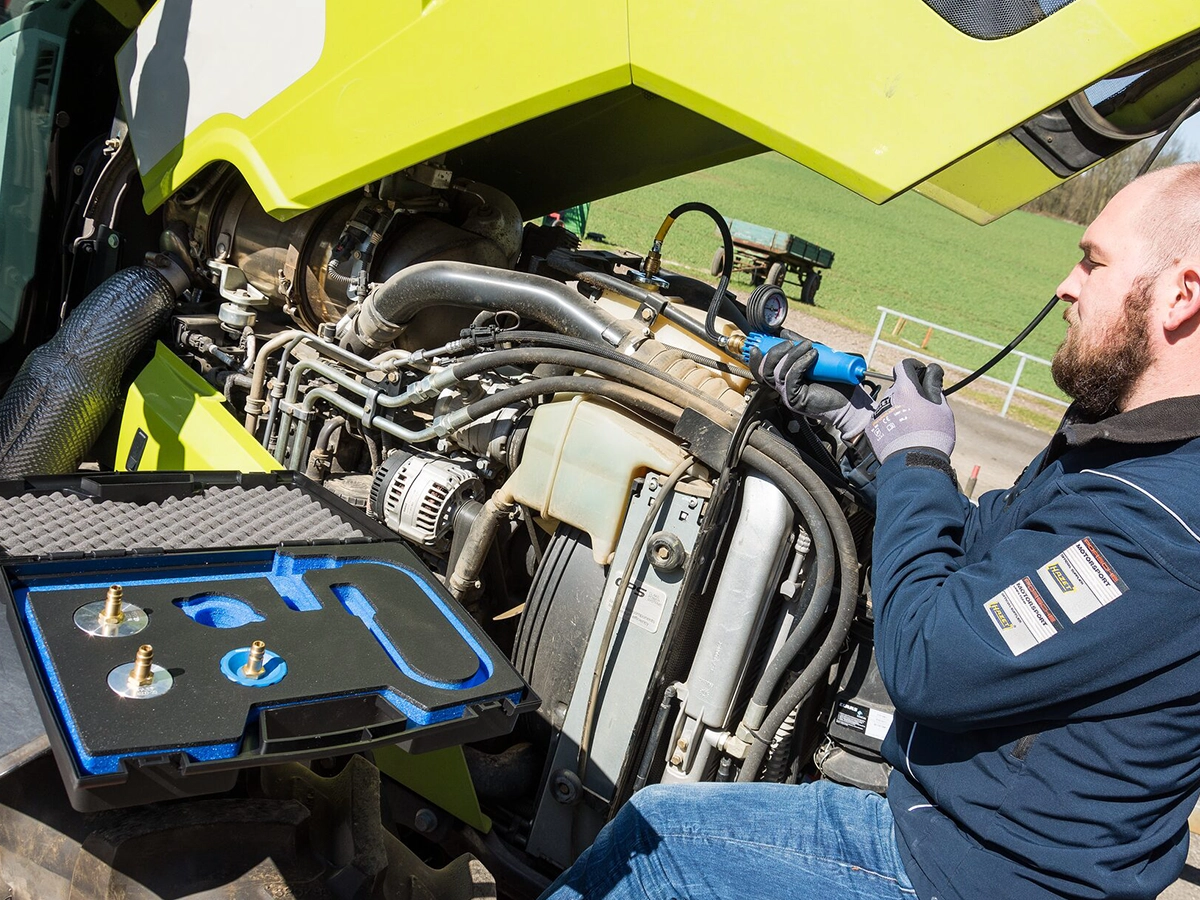 Hazet 4800/6 Radyatör Sızdırmazlık Test Seti, maksimum 2.5 bar çalışma basıncı ile özellikle tarım araçlarının soğutma sistemlerinde kaçak kontrolü için tasarlanmıştır. Set içeriğinde 4800-1 vakum el pompası, 4800-2 hortum ve 4800-3 adaptör bulunmaktadır. AMAZONE Pantera, CLAAS (Jaguar, Lexion, Scorpion, Ares, Atles, Ceres, Arion, Axion), FENDT, Massey Ferguson, CASE (Quadtrac, Magnum, Puma, Optum, Maxxum, CVX), New Holland (TVT, T6, T7), Deutz motorları ve Mercedes-Benz gibi birçok tarım ve iş makinesi modeliyle uyumludur.