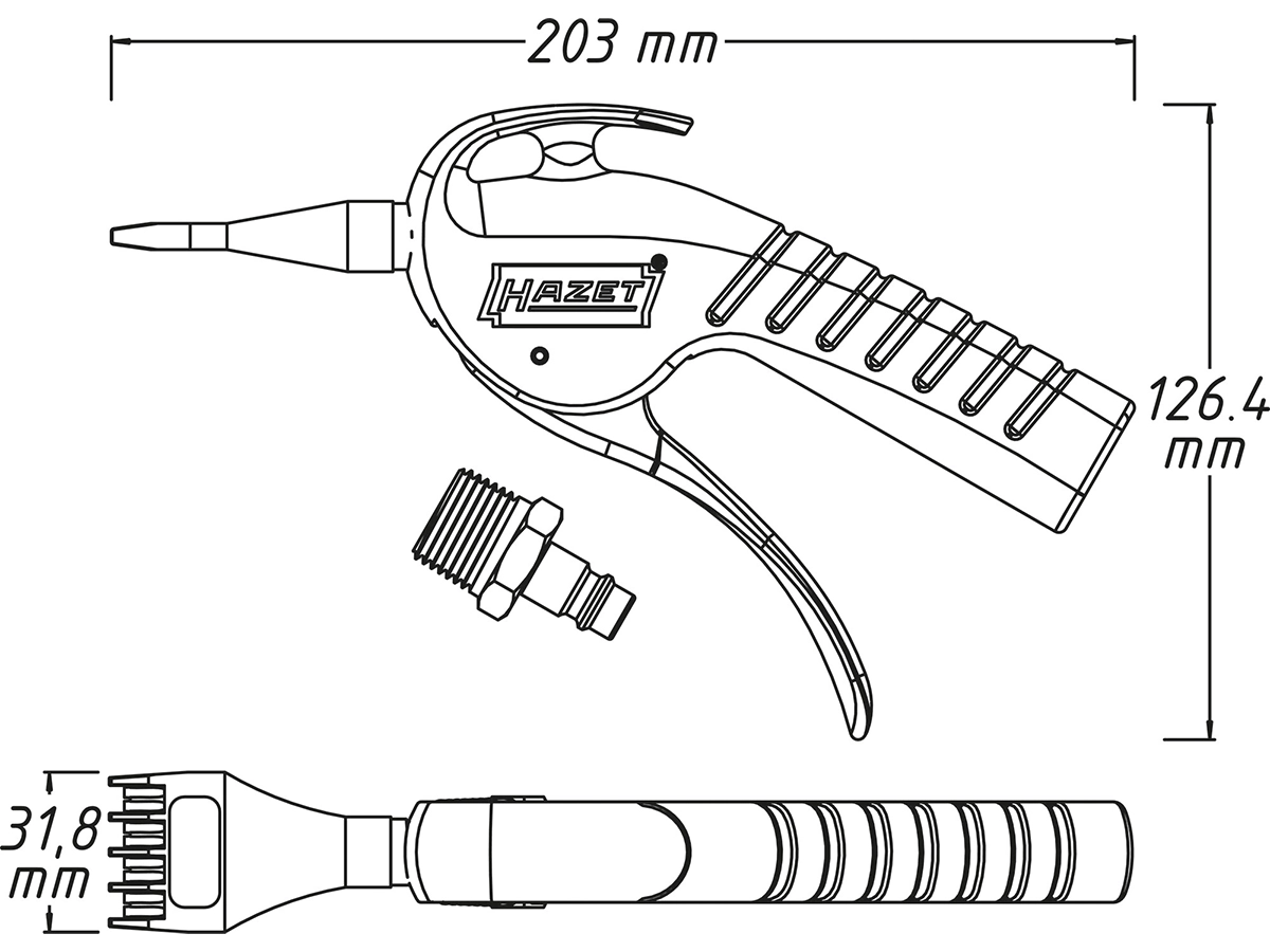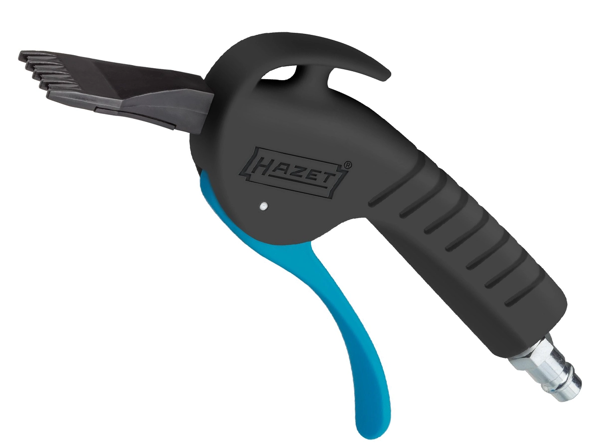Hazet 9040P-5 hava üfleme tabancası, özellikle ulaşılması zor alanlarda talaş, toz ve diğer yabancı parçacıkların hızlı ve etkili şekilde temizlenmesi için tasarlanmıştır. Geniş ve düz tip (yassı) üfleme nozulu sayesinde yüzey temizliğinde güçlü ve geniş bir hava akışı sağlayarak etkili temizlik sunar. Tıkanmayı önleyen özel tasarımı ve güçlü üfleme performansı ile makine bakımı, endüstriyel temizlik, atölye çalışmaları, ahşap işleri ve hobi atölyelerinde güvenle kullanılabilir. Maksimum 16 bar çalışma basıncına sahip olan ürün, 1/4” (12.91 mm) iç dişli hava giriş bağlantısı ile kompresör sistemlerine kolayca bağlanır ve 450 l/dk (7.5 l/sn) hava tüketimi ile yüksek performans sağlar. Ergonomik ve dayanıklı yapısı sayesinde uzun süreli kullanımda konfor sunar; üfleme sistemi ve gövde dayanıklı malzemelerden üretilmiştir. Tutma kolu, tetik ve valf mekanizması asetal plastikten, conta ve O-ringler nitril malzemeden, yay ise sertleştirilmiş yay çeliğinden üretilmiştir.