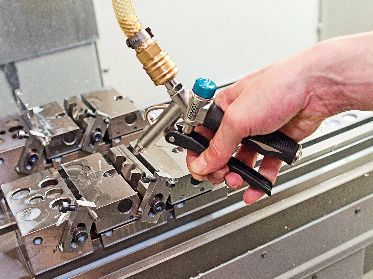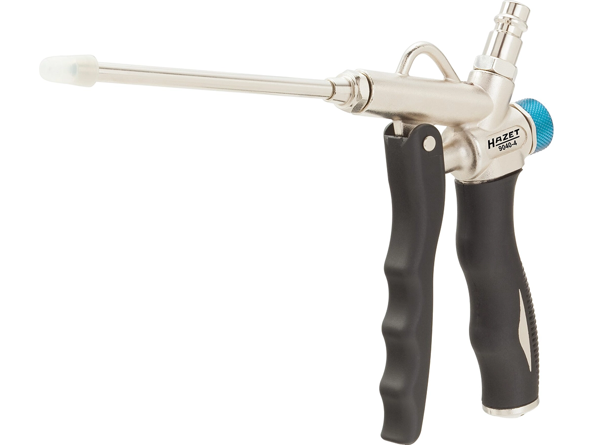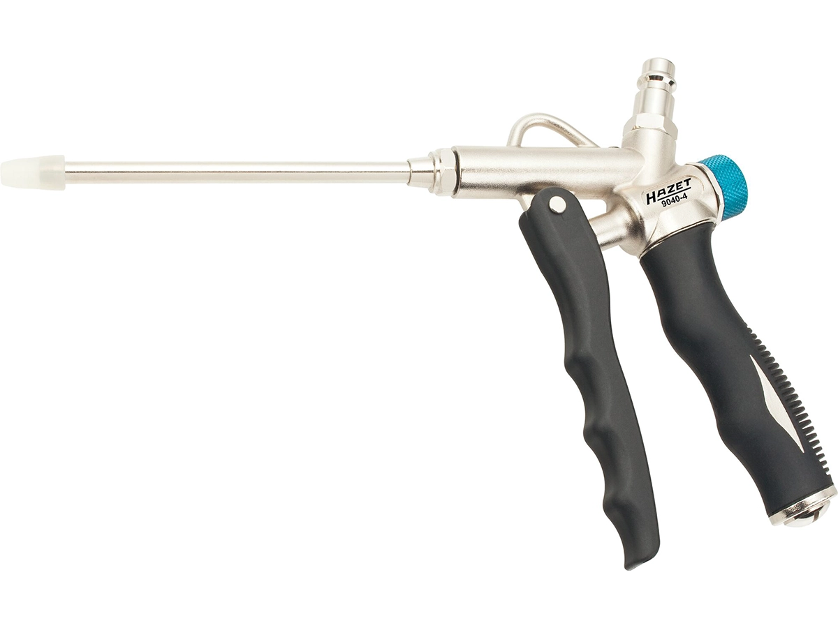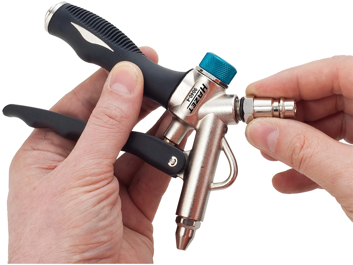 Üst BağlantıÜrün değiştirilebilir nozul sistemi ile birlikte gelir. Dar ve ulaşılması zor alanlar için kısa nozul, yüzeylere zarar vermemek için güvenlik uçlu 112 mm uzunluğunda plastik ağızlı nozul kullanılabilir. 1/8” PF28 nozul dişi (9.728 mm x 0.907 mm diş adımı) bağlantısı sayesinde nozullar kolayca değiştirilebilir. Ergonomik ve dayanıklı alüminyum gövde yapısına sahip olan tabancanın tutma kolu soğuğa karşı yalıtımlı ve kaymaz tasarıma sahiptir. Tıkanmayı önleyen tasarımı güvenli kullanım sağlarken maksimum 86 dB(A) gürültü seviyesi ile düşük ses seviyesinde çalışır. Yaklaşık 0.2 kg net ağırlığa sahip olan ürün ile birlikte nominal ölçüsü 7.2 olan hızlı bağlantı kaplin fişi de sunulmaktadır. Bu özellikleri sayesinde Hazet 9040-4, atölye veendüstriyel temizlik uygulamalarında güvenilir ve pratik bir çözüm sunar.