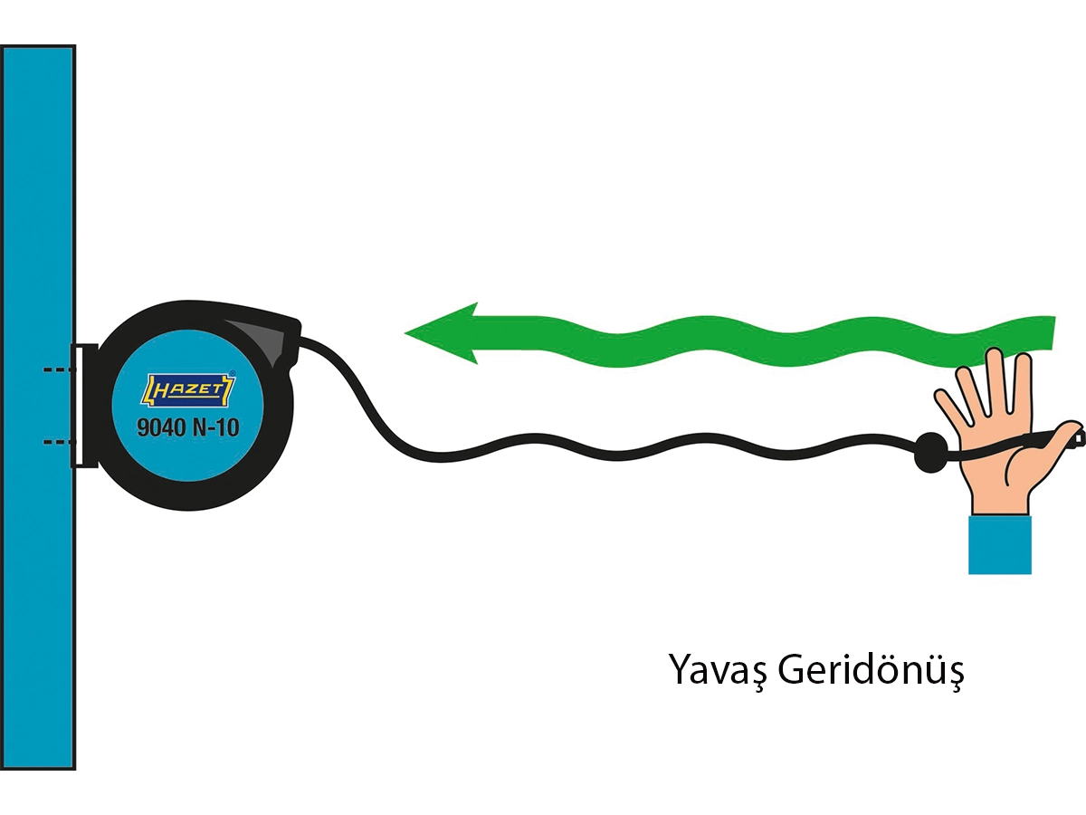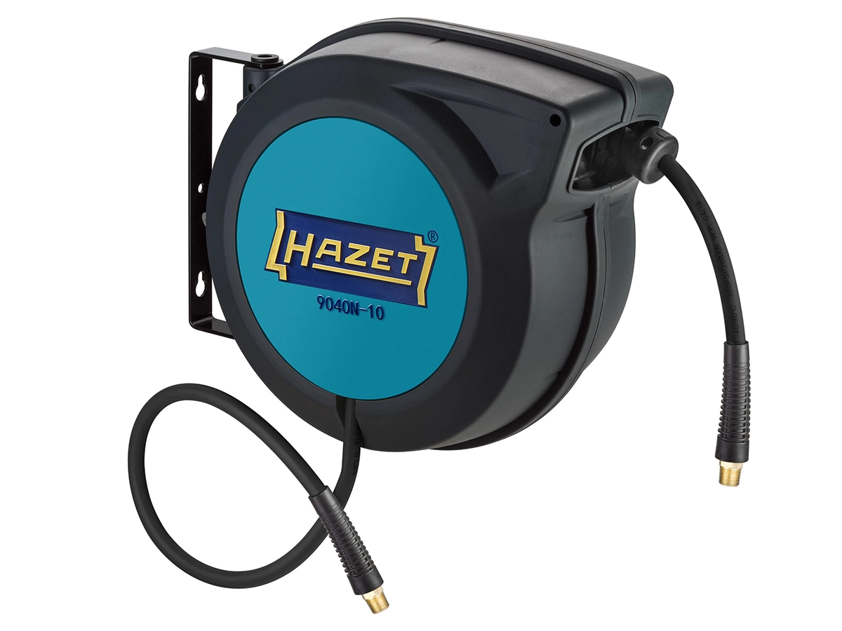 Hazet 9040N-10 otomatik hava hortum makarası, hortumun yerde dağınık şekilde durmasını önleyerek atölyede düzen ve güvenli çalışma ortamı sağlar. Otomatik hortum sarma ve yönlendirme sistemi sayesinde hortum düzgün şekilde makaraya sarılırken, istenilen noktada durdurma ve frenli geri sarma mekanizması güvenli kullanım sunar. Maksimum 20 bar çalışma basıncı, 15 m hortum uzunluğu ve 10 mm hortum iç çapı ile atölye uygulamaları için uygundur. Dayanıklı siyah hibrit polimer hortumu, BSPT diş bağlantısı, 80 cm bağlantı hortumu ve döner metal montaj braketi ile birlikte sunulur. Ürün 459 × 378 × 205 mm ölçülerinde, yaklaşık 6,45 kg ağırlığındadır ve Makine Direktifi 2006/42/EC gerekliliklerini karşılar. Servis ve teknik destek Surkon tarafından sağlanır.