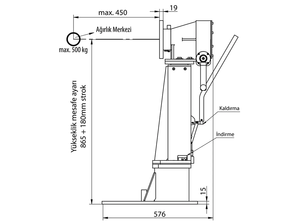- Kriko destekli 180mm yükseklik ayarlı