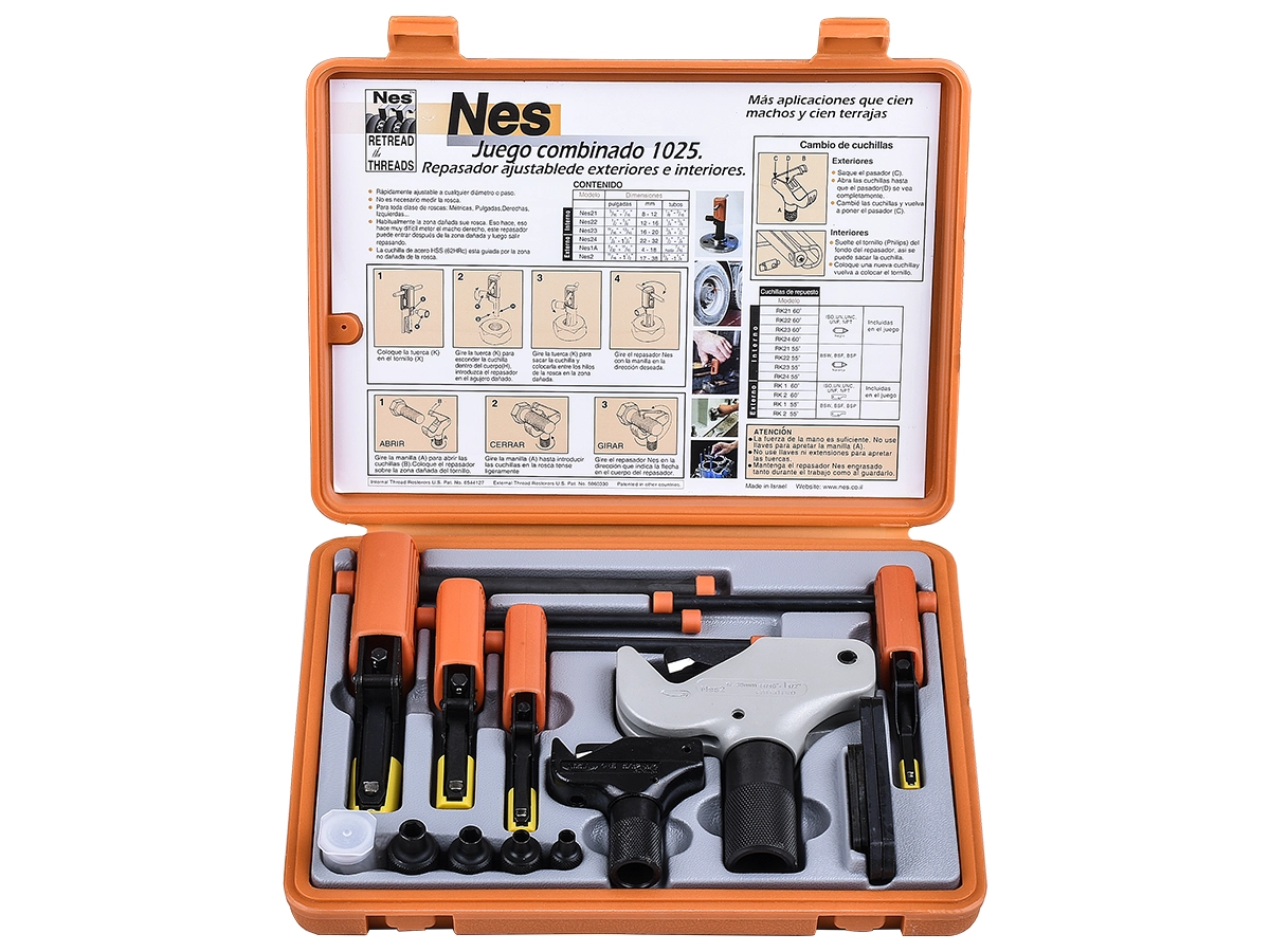 NES 1015 cıvata diş tamir seti dış dişlerde M4 ile M19 arasında, iç dişlerde ise M8-M16 arasındaki hasar görmüş veya aşınmış vida dişlerini hızlı ve yerinde onarmak için tasarlanmıştır. Bu cihazın kullanımı sırasında diş tarağı ile diş ölçümü yapılmasına gerek kalmaz. Ekipman bıçağı sağlam dişler üzerine konumlandırılır. Kesici bıçaklar diş ölçüsüne göre ayarlanır. Saplama veya cihazın döndürülmesiyle hasarlı veya oksitlenmiş dişler temizlenir ve tamir edilir.